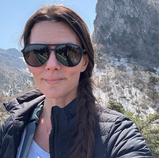 I didn’t make the summit today. Hikers must reach a shelter checkpoint—about 80% of the way up—before 12:30 to continue, which ensures there’s enough time to descend before sunset. I couldn’t start the hike any earlier than 10 due to that being the only reservation window available, and would have made it with about 15 minutes to spare if I had arrived at the trailhead by 10am. But. My “arriving in 2 min” taxi didn’t arrive to pick me up until 25 minutes later, which put my arrival at the check-in station at 10:30. I hauled my ass straight up—3,200 ft of elevation gain in 4 miles—as fast as I could. The trail was rocky, and by 2,000 ft, it was covered in snow. I arrived at the shelter at 12:43, and was not allowed to proceed. The view at this point was beautiful as the trail finally emerged from the woods, but I was so disappointed to not be able to continue. I climbed to the top of the bleacher-style lookout to take pictures and just… started crying. For a lot of reasons. Awkward, since other hikers were there lunching or resting. A nice older Korean couple offered me a piece of bread which I politely declined (they were so prepared with hot soup, eggs, a whole meal! Me, I had a couple Rx bars haha), and then soon started back down the trail.